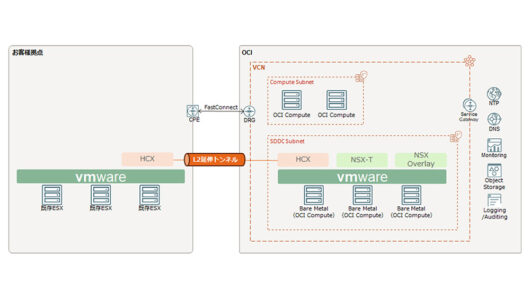 ハイブリッドクラウドOCIVMware移行OCVSネットワーク延伸HCX大手インフラ企業向け クラウドと社内ネットワークを同じネットワークのように見せる構成で、OCI上のシステム基盤を構築